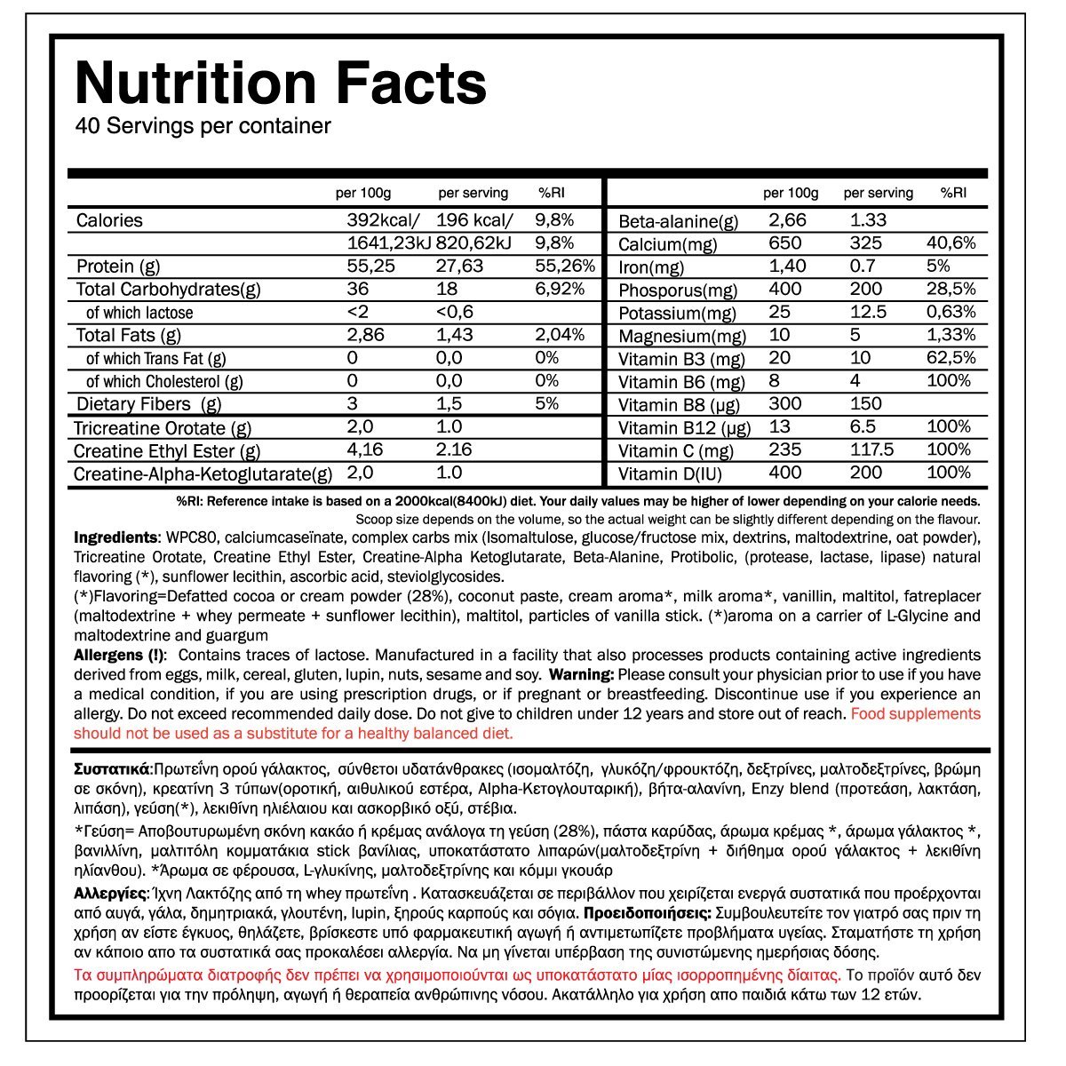 Δοσολογία:1 δόση(50 γραμμάρια) το πρωί και 1 δόση μετά απο την προπόνηση.